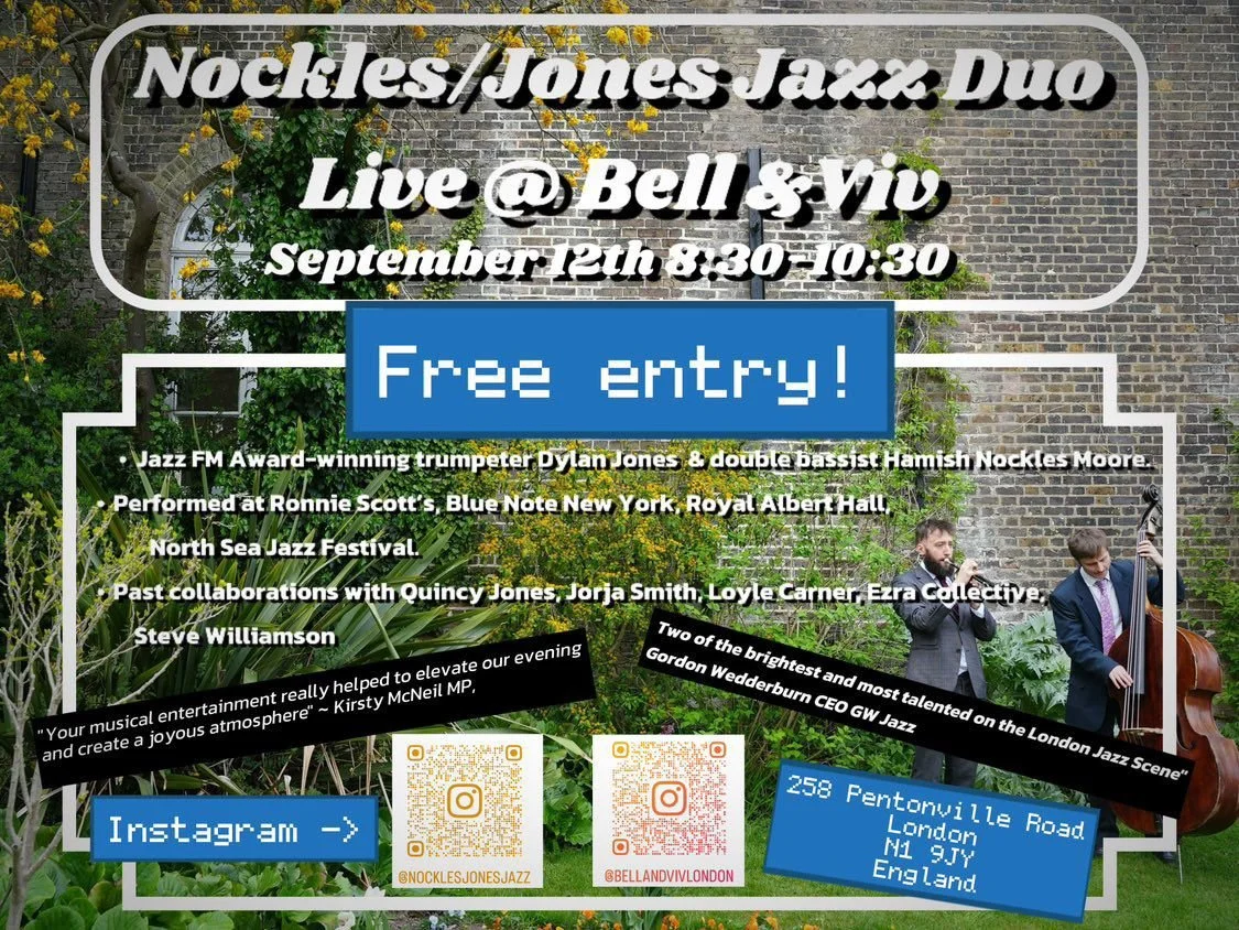 Nockles & Jones - An amazing night of Jazz at Bell and Viv - Free Entry